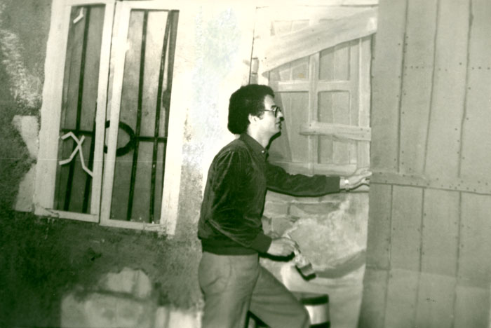 Artist Essam Azouz during working on the stage